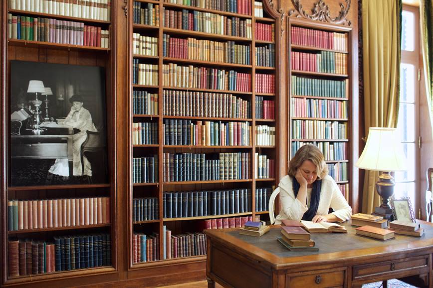The books on the shelves of the library are from Wharton’s own personal collection, purchased by Edith Wharton Restoration in 2005. The collection contains books from every period of Wharton’s life, written in English, French, German, and Italian. Included are a significant number of Wharton’s own works, many with corrections penciled in. There are books written by friends, many containing personal inscriptions.