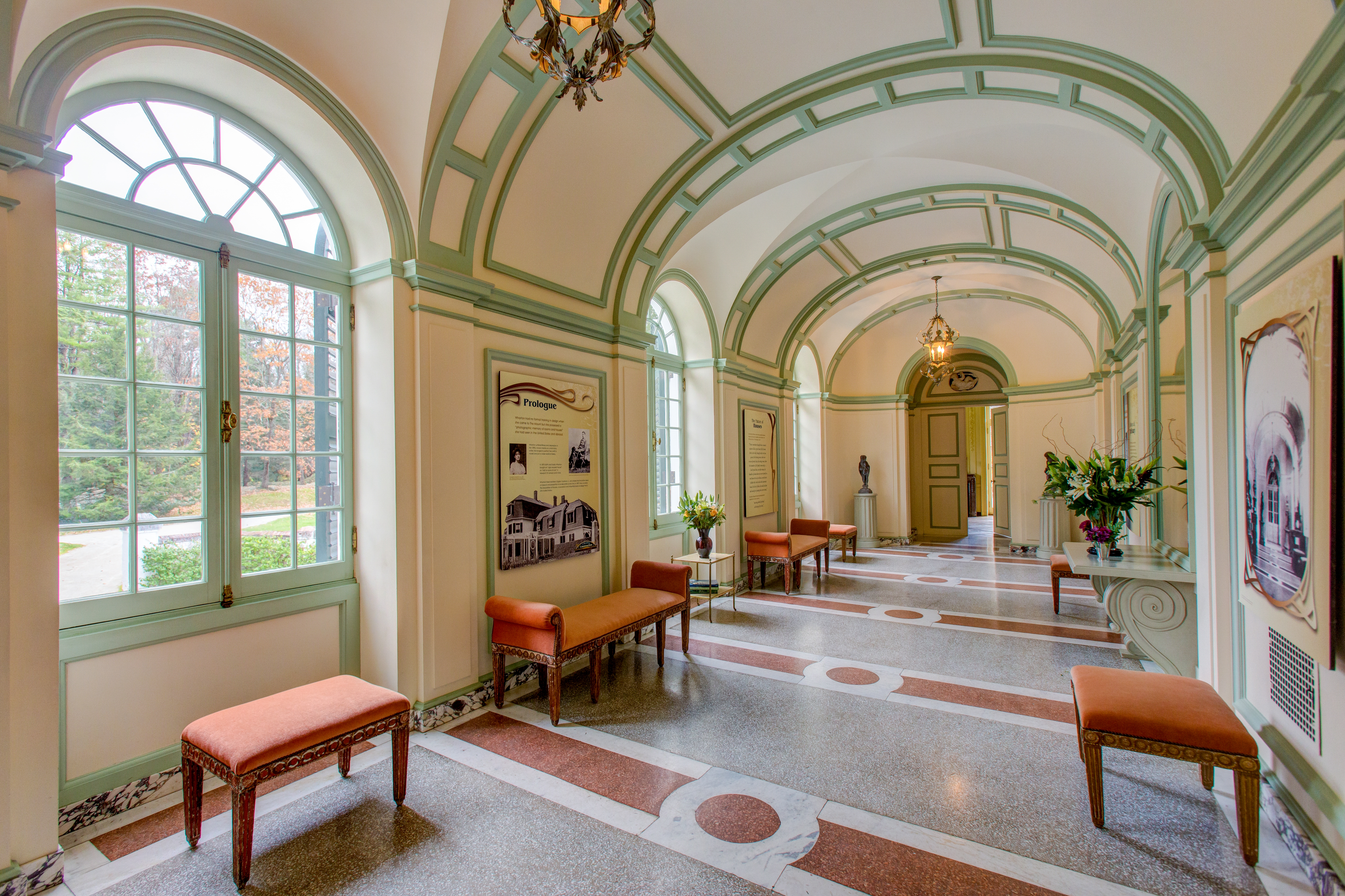 The Mount’s interior, designed by Wharton and Codman, is informed by classic Italian and French influences, and based on principles expressed in their book, The Decoration of Houses (1897). The fundamental premise of that influential work is that interior decoration cannot exist independent of structure; that“architectural features …are part of the organism of every house, inside as well as out.”