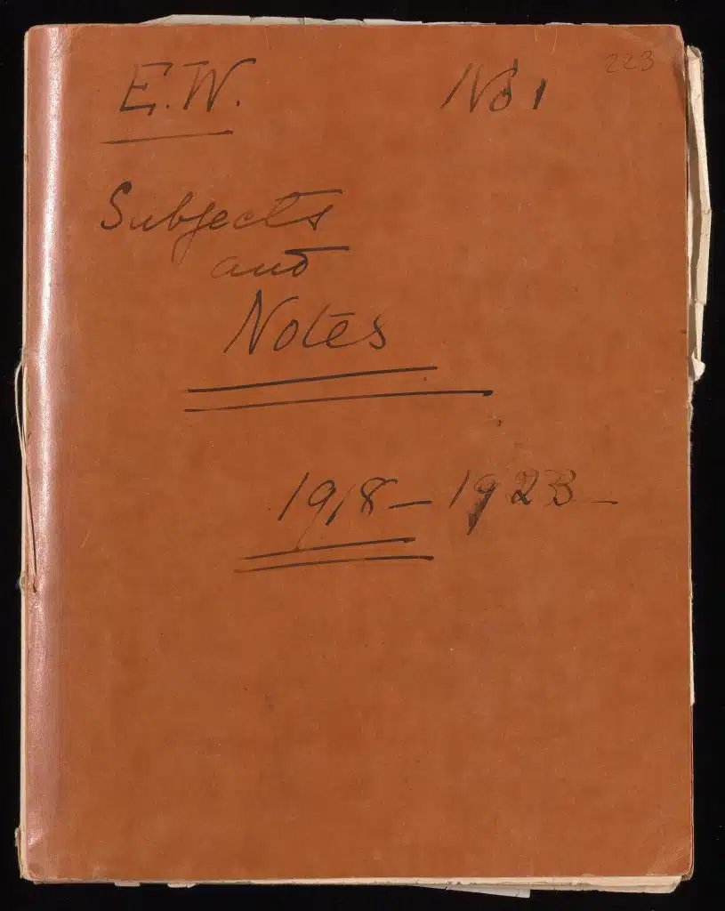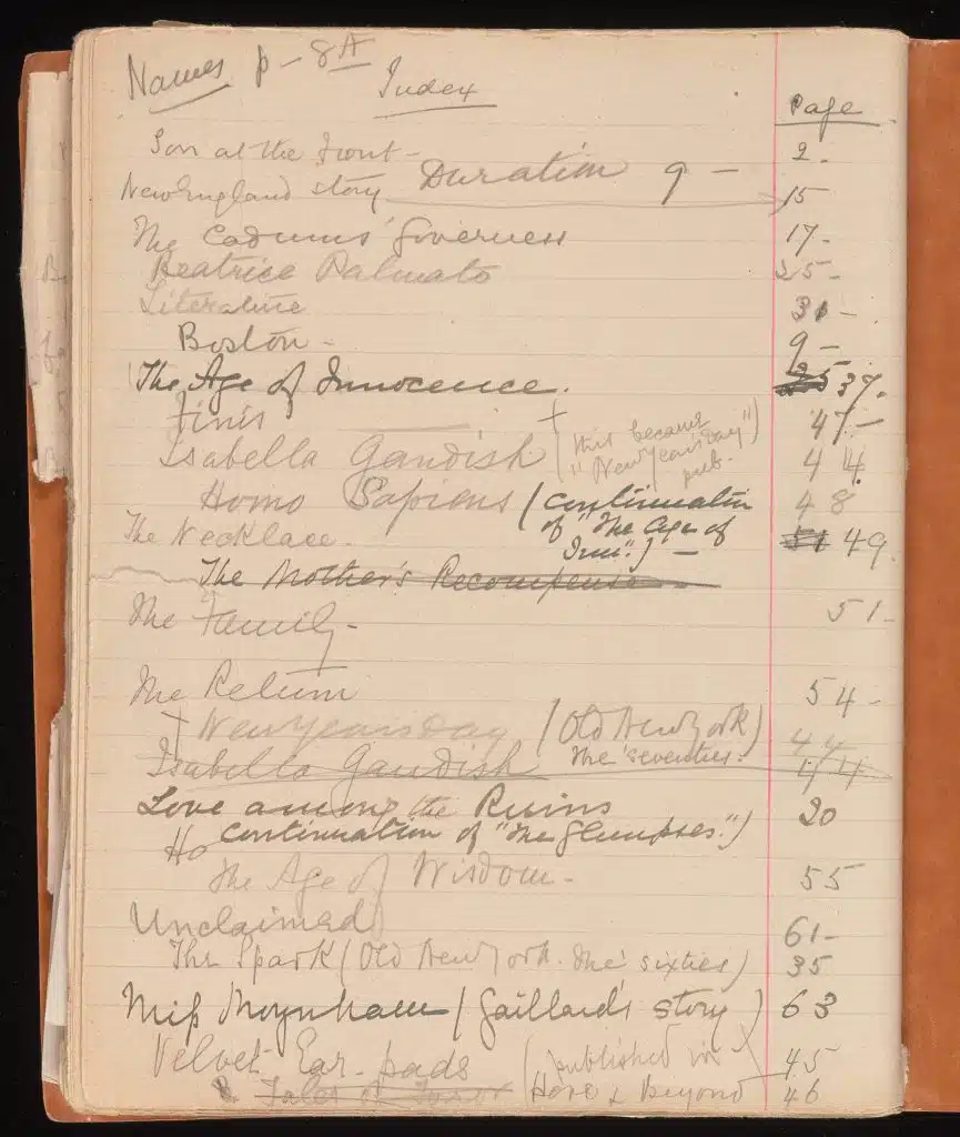 Wharton began her writing process in unassuming, but carefully labeled, notebooks.